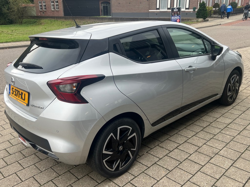 Bent u op zoek naar een sportieve en betrouwbare hatchback die ook nog eens geschikt is voor vijf personen? Dan is deze Nissan Micra 1.0 IG-T BNS DESIGN uit 2023 de perfecte auto voor u. Met zijn grijze kleur en strakke lijnen is deze auto een echte eyecatcher. Deze Nissan Micra is afkomstig van de eerste eigenaar en is origineel Nederlands. Dat betekent dat u verzekerd bent van een goed onderhouden auto met een volledige onderhoudshistorie. De kilometerstand van 79137 is dan ook volledig aantoonbaar. Met zijn handgeschakelde 5-bak transmissie is deze Micra niet alleen sportief, maar ook nog eens zuinig in verbruik. Dat maakt hem niet alleen geschikt voor dagelijks gebruik, maar ook voor lange ritten. Door zijn compacte formaat is hij bovendien gemakkelijk te manoeuvreren in de stad. Het interieur van deze Micra is voorzien van alle gemakken. Met ruimte voor vijf personen en een grote bagageruimte is hij perfect voor gezinsuitstapjes of weekendjes weg. De stoelen zijn comfortabel en bieden voldoende ondersteuning, zelfs tijdens langere ritten. Wat deze Micra extra bijzonder maakt, is zijn sportieve uitstraling. Met zijn strakke design en stoere details is hij een echte eyecatcher. Bovendien is hij voorzien van alle moderne gemakken, zoals airconditioning, een navigatiesysteem en een uitgebreid infotainmentsysteem. Bent u op zoek naar een betrouwbare en sportieve hatchback die ook nog eens geschikt is voor vijf personen? Dan is deze Nissan Micra 1.0 IG-T BNS DESIGN uit 2023 de auto voor u. Kom langs voor een proefrit en ervaar zelf het comfort en de sportiviteit van deze bijzondere auto.